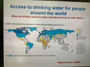 全体的感想としては、何よりもいずれの質問にも多くの生徒さんが手をあげて、嬉々として自分の考えを述べてくれることが印象的でした。探求と対話を重視する教育方針がしっかり生きています。知識偏重型の日本の教育とのちがいを改めて感じるミニ講演でした。日々、友達が異国文化を担っていて、言葉も多様、考え方も多様、そのような学校の皆さんに、生きる上で何よりも必須の水の問題に関心をもってもらったら幸いです。
