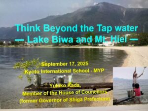 2025年9月17日、Kyoto International School の中学年生75名の生徒さんに、かねてから知り合いの友人から「琵琶湖の話をしてほしい」という依頼を受け、講演と対話の場に参加させていただきました。KISでは毎年生徒同士の「チームビルディング(仲間意識の強化)」のために遠隔地での指導を行ってきたが、せっかく近くに琵琶湖があるので、ということで大津市北部のオーパルでカヤックや、いかだづくりなど水辺活動プログラムを導入したということ。その関連で、宿泊の大津グランドホテルで琵琶湖の話をしてほしいという依頼を受けました。(また長いです。1800文字)。
