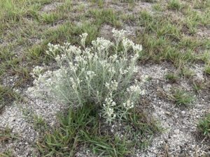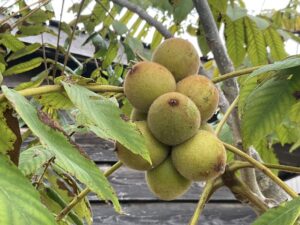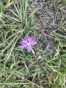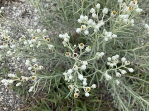 浜の草原にはカワラハハコグサが咲き始めました。夏の名残のカワラナデシコがようやく一花、名残のハギに加えて、庭ではオニグルミが実をつけています。秋は確実にすすんでいます。