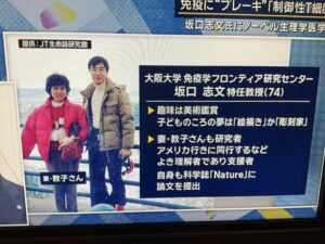 大阪大学で記者会見の途中、石破総理からの電話が繋がったという。石破総理の祝いの言葉に対して、免疫学の知識が進み、ガン治療や花粉症などアレルギー問題に坂口さんたちが発見された「制御性T細胞」が医療技術として実装されるには20年はかかる、とこたえていました。そして基礎研究への研究費を、国として確保をしてほしい、と直接総理にお願いをしていました。京大でノーベル医学賞を受けた本庶祐さんも、受賞時に同じことを言っておられました。