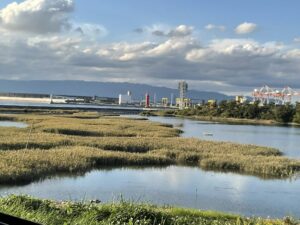 10月13日に「大阪・関西万博」が無事閉幕になりました。もともと「大阪万博」であったものが、関西広域連合という広域自治体が母体に参加することで関西全体として万博を受け止め、全体で2500万人を超える来場者になりました。大屋根リングにより象徴的に「多様でひとつ」という理念が表明されました。それぞれにご意見があると思いますが、私は琵琶湖・淀川水系という流域が上下流で連携をして関西全体の存在感を高めてきたと評価しています。具体的には関西バビリオンには二府四県それぞれの府県展示と並行して「水のつながり」として関西全体の展示パネルもつくられ、存在感を高めました。関西では1450万人が琵琶湖・淀川水を飲み水として運命共同体を構成しています。万博会場の蛇口の水は琵琶湖・淀川水系からです。同時に、夢洲の土地そのものは、上流二府四県からの焼却灰や建築廃材を受け止めてくれた場であり、上流の人間にとっては「感謝をするべき場所」です。そこで、水源地域から、最下流部の大阪湾埋め立て地の夢洲に感謝を伝えられるような「命のつながり」を贈ることができないかと発想し、琵琶湖水源の巨木を守り・育てる「トチノキ学ネットワーク」の湯本貴和代表、小松明美さん、飯田義彦さんをお誘いし、10月15日に、大阪湾岸の生物多様性保全地域を訪問してきました。少し長くなりますが、報告します。10月16日。(また長いです、2300文字 写真多数 記録目的です)。