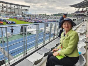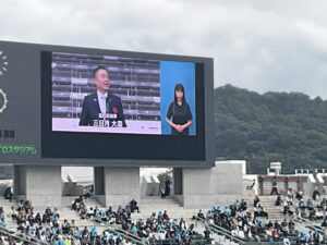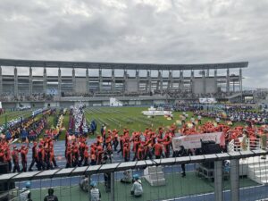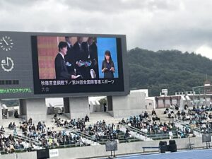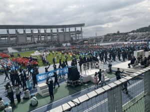 10月25日(土)、「わたSHIGA輝く障スポ2025」の開会式が、彦根市の平和堂HATOスタジアムにて開催されました。秋篠宮皇嗣・同妃両殿下御臨席のもと、全国の都道府県、政令指定市からの代表をお迎えしました。国スポと比べて、政令市も独立の代表団を送っており、参加組数は多くなっています。また国スポとちがって、開催日は3日間で、来週月曜日には閉会式です。