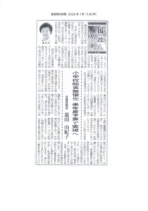 20260115 滋賀報知新聞に掲載 小学校給食無償化 来年度予算で実現へ