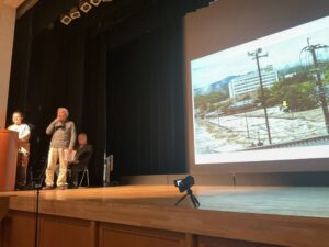 私は、地域での水害による溺死者調査をやってきた経験に照らして、国土交通省が解説するダムによる命を救う効果に、社会的事実として嘘が多いことに何度も直面して,自分が知事職に挑戦するしかないという覚悟で知事選挙に挑戦した経緯や、琵琶湖淀川の京都府と大阪府の下流知事との連携など語らせていただき、後半には、ダムの費用対効果が、1、0以下でも、残事業が1.0以上あれば事業継続という国土交通省の官僚がきめている技術指針のおかしさを指摘し、税金の無駄遣いをただす政策が必要と訴えました。