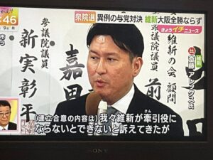 二区の岡屋きょうすけさんは徳永久志さんの地盤をついて急な出馬となりましたが、自分の言葉で自民党だけでは日本の未来がひらけない、与党の中の改革のアクセルとして維新が必要と訴えてきました。三区のでじしんごさんは、官僚としての経験をもとに、子育てや外国人政策に夢を語ってくれました。おかやさん、でじさんは、議席はいただけませんでしたが、若い候補者です。今後の展開を期待します。