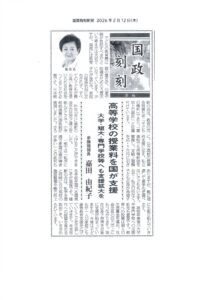 20260212 滋賀報知新聞に掲載 高等学校の授業料を国が支援 大学・短大・専門学校等へも支援拡大を