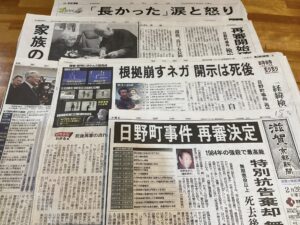 2月18日に特別国会が召集され、7月17日まで150日の国会がはじまりました。2月8日に当選した新しい衆議院議員を迎え、今国会に提案される議案が65件以上あり、その連日の事前審査、そして開会式から本会議と日々の会議におわれています。今日は、昨日の新聞で大きくとりあげられた「日野町事件 再審決定」について、報告します。(長いです、すみません、1500文字)
