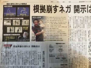 写真のネガを地元の弁護士たちが執拗に求めて発見されたのは、金庫発見の帰りみち(復路)の写真が、阪原さんが案内する行路(往路)とされ、警察の不正捜査のワナにかけられてしまったことになります。さすがこのネガの存在で、阪原さんの無罪の可能性がたかまり、再審の動きになりました。しかし、ここに検察側の 抗告という再審を阻止する訴えがはいり、日野町事件はこの期間にご本人は獄中で命を落とし、息子さんが、死後再審に挑戦します。この間、24年間。なんと長い年月、命は戻りません。法制審議会の案は上の二つを軽視した案です。刑事局の意向を受けた委員選別のところから問題がある、と本日も議連で指摘がありました。