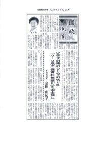 20260312 滋賀報知新聞掲載 少子化対策のひとつの切り札「0-2歳児保育料無償化」を国全体に