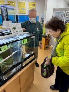 「自然観察学習館」では、動植物の種子や葉っぱの展示、また淀川水系の魚類も水槽展示され、二ゴロブナにも出会いました。またモリアオガエルもこの館内で生まれた個体が政調して展示されています。館のマネージメント職では森香織さんという方がとりまとめをしておられるようで、京都精華大学の芸術学科を卒業しておられるようでかつて奉職していた大学の卒業生が活躍してくれていることがうれしかったです。